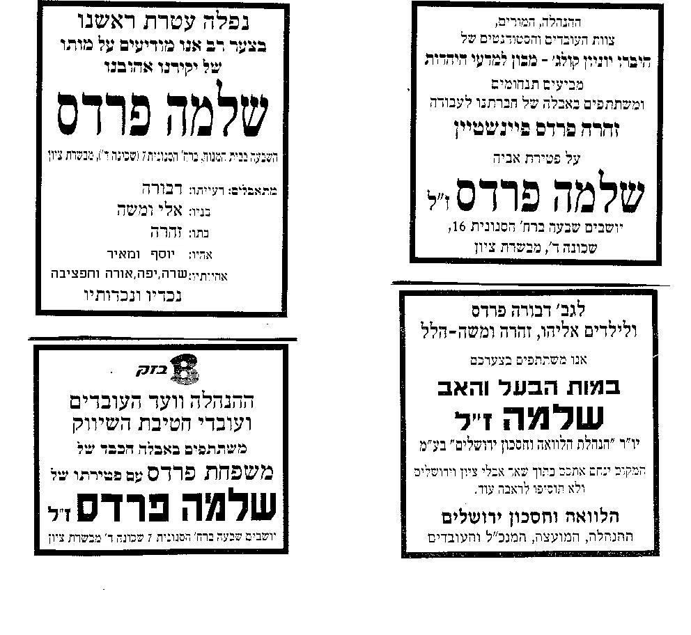 שלמה פרדס בן זהרה והרב אליהו פרדס זצ"ל נפטר ג' בתמוז תשס"ד 22 ביוני 2004